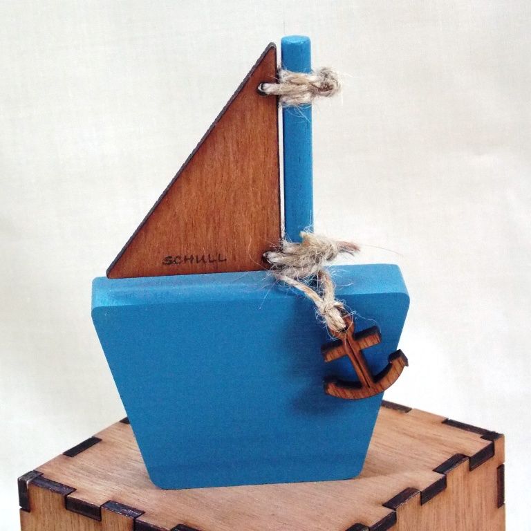 Cute ornamental wooden sail boat with personalised etched wooden sail. Choose a name/date/place and we will etch that onto your little boats sail, makes a nice gift for any age.